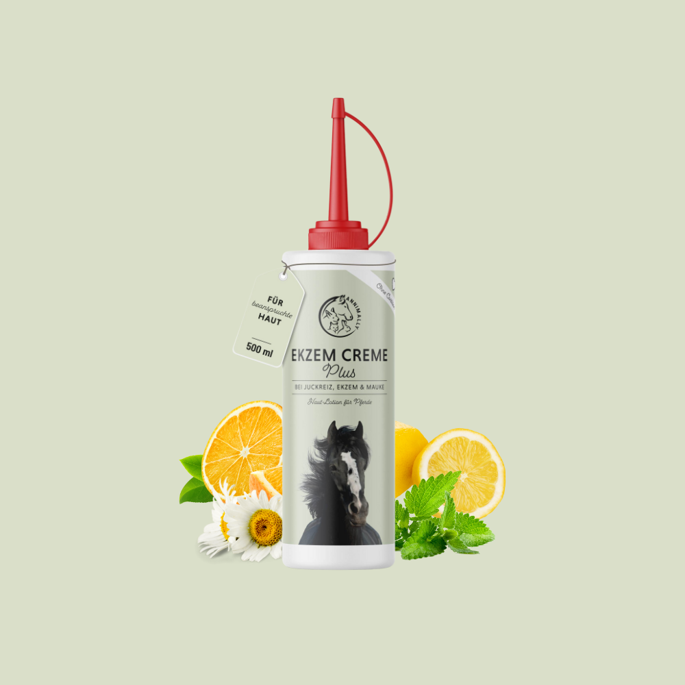 The cream does not require cortisone, preservatives or emulsifiers and is therefore ideal for sensitive horses. Valuable essential oils and nourishing D-panthenol ensure good tolerability. Our Eczema Cream Plus gently reduces itching while caring for the skin.