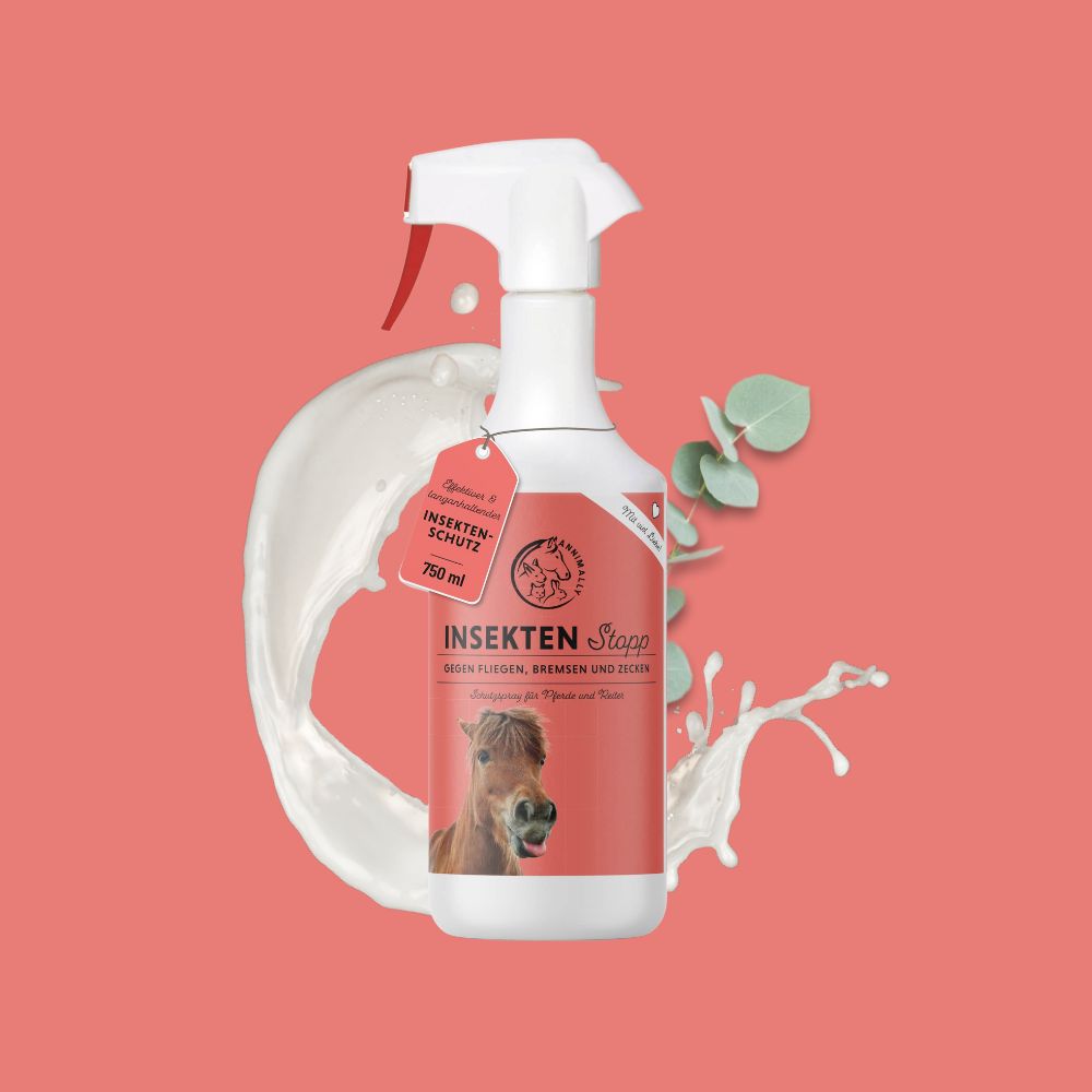 In summer, riders and horses are often plagued by insects, flies, horseflies, ticks and other vermin. In order to put an end to this as quickly as possible, we have developed our insect stop for horse and rider. Natural eucalyptus oil and proven Saltidin® ensure highly compatible protection against insects. The highly effective spray is almost odorless and suitable for daily use. Once sprayed on, it has a reliable and long-lasting effect.